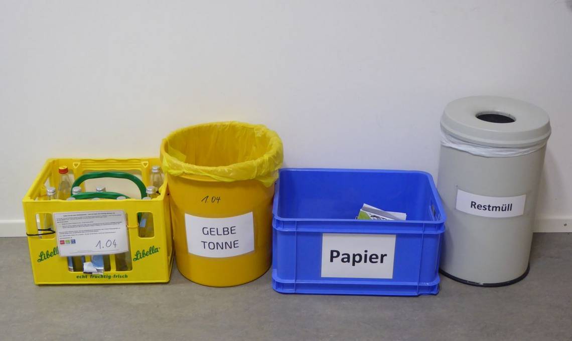 Wir haben die Mülltrennung und die Recyclingquote erhöht, v.a. durch Einführung eines „gelben Eimers“ in den Klassenzimmern und Fachräumen. Nun stehen in jedem Zimmer folgende Behälter gut beschriftet zur Verfügung: eine blaue Papierkiste, ein gelber Eimer für Verpackungsmaterialien und ein grauer Restmülleimer. Plakate des Landratsamtes über die richtige Mülltrennung erleichtern die Sortierung. Jeden Freitag bringen die Schülerinnen und Schüler selbständig die Papierkisten und gelben Eimer zu den Wertstoffcontainern.