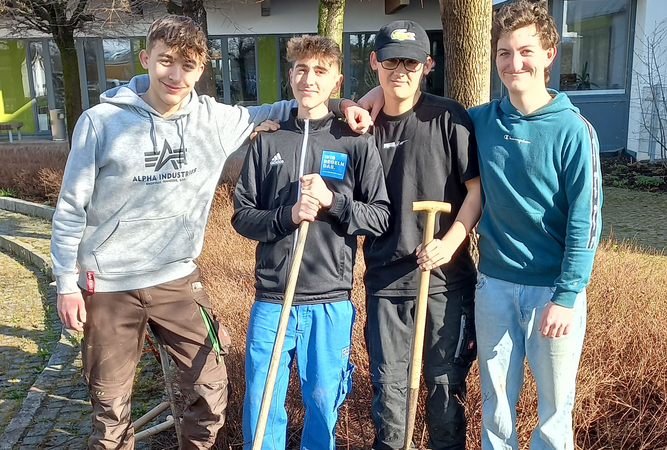 Eine direkte Kompensation der Treibhausgasemissionen ist uns nicht möglich – dafür müssten Tausende neuer Bäume außerhalb bestehender Wälder gepflanzt werden. Aber wir gestalten unser Schulgelände so naturnah wie möglich: Wir pflanzen auf Grünflächen neue Bäume, wir legen Blühflächen an und lassen Wiesenbereich später mähen, und wir haben die Vorarbeiten für die Anlage von Kräuterbeeten übernommen. Mit diesen Maßnahmen wird unser Schulgelände lebenswerter für Menschen und Tiere gestaltet und wir leisten einen Beitrag zum Artenschutz.