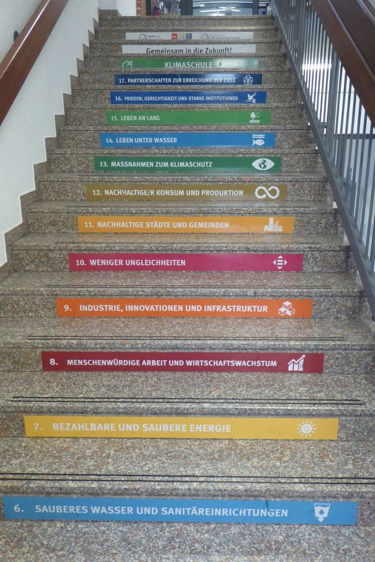 Die Themen Klimaschutz und Nachhaltigkeit werden in ganz unterschiedlichen Fächern behandelt, nicht nur in naturwissenschaftlichen Fächern, sondern auch in Wirtschaftsfächern, Religion / Ethik oder Deutsch. Weiterhin finden Ausflüge und Projekte zu diesen Themen statt.