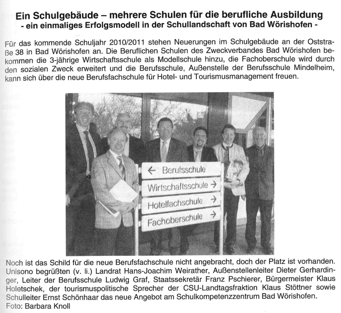 Zum Schuljahr 2010/2011 werden neue Ausbildungsmöglichkeiten angeboten: hinzu kommt die drei-jährige Wirtschaftsschule als Modellschule, außerdem offeriert die FOS jetzt das Sozialwesen und die neue Berufsfachschule für Hotel- und Tourismusmanagement geht in Bad Wörishofen an den Start.